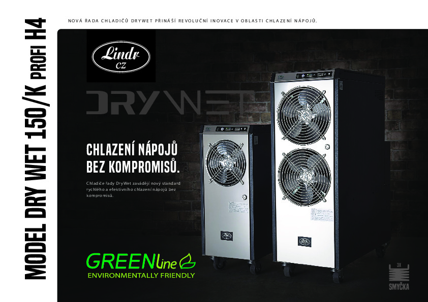 - DRYWET TECHNOLOGIE – Inovativní technologie Lindr DryWet využívá efektivní suché chlazení doplněné výkonnou recirkulační pumpou pro dochlazovací vodní smyčku, která udržuje stabilní teplotu nápoje až k výčepnímu kohoutu. Díky modernímu thermoblocku Lindr jsou chladiče připraveny k použití již za 5–10 minut po zapnutí, což šetří čas a zajišťuje okamžitou dostupnost dokonale vychlazeného nápoje.