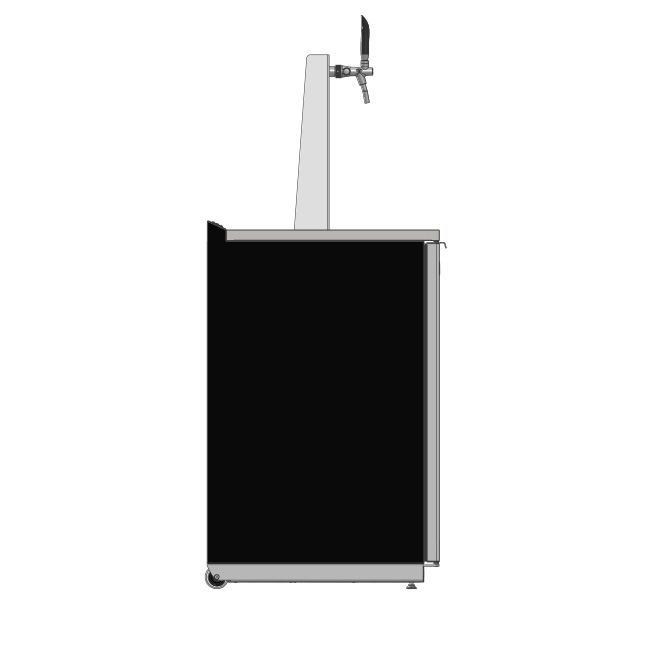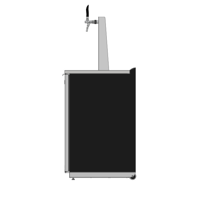 Nasávání a výfuk vzduchu je umístěno v soklu, což umožňuje snadnou integraci zařízení do barového pultu bez nutnosti bočních větracích otvorů. Při použití jako samostatně stojící chladič umožňuje čistý design celoplošný polep nebo branding, případně doplnění podsvíceného reklamního panelu. Dno chrání kvalitní nerezové planžety.