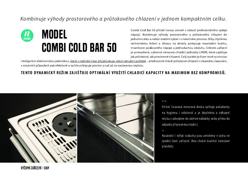 - INOVACE – CombiColdBar 50 přináší pokročilé řešení pro výdej a uchování nápojů v sudech, spojující dvě technologie chlazení do jednoho zařízení. Vzniká tak profesionální výčepní systém, který zajišťuje vysoký výkon a stabilní kvalitu nápoje.