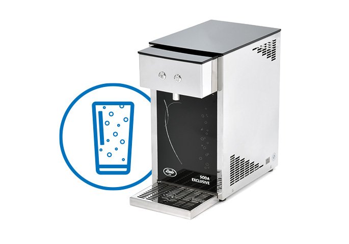 Professional machine designed for the production of chilled soda water. This machine is without taps, designed to be placed under the counter.