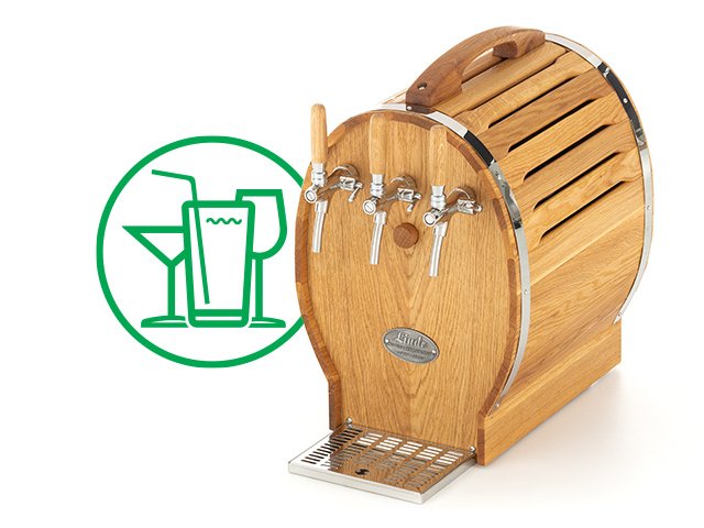 Our standard coolers are equipped with nickel-plated brass taps, which are ideal for dispensing beer. For wine, cocktails, and other beverages, we recommend using stainless steel taps. This is due to the material stability — drinks like wine contain acids that can degrade the nickel layer over time. Stainless steel is resistant to such effects, making it a more suitable choice for these types of beverages. Coolers with stainless steel taps are available upon request.
